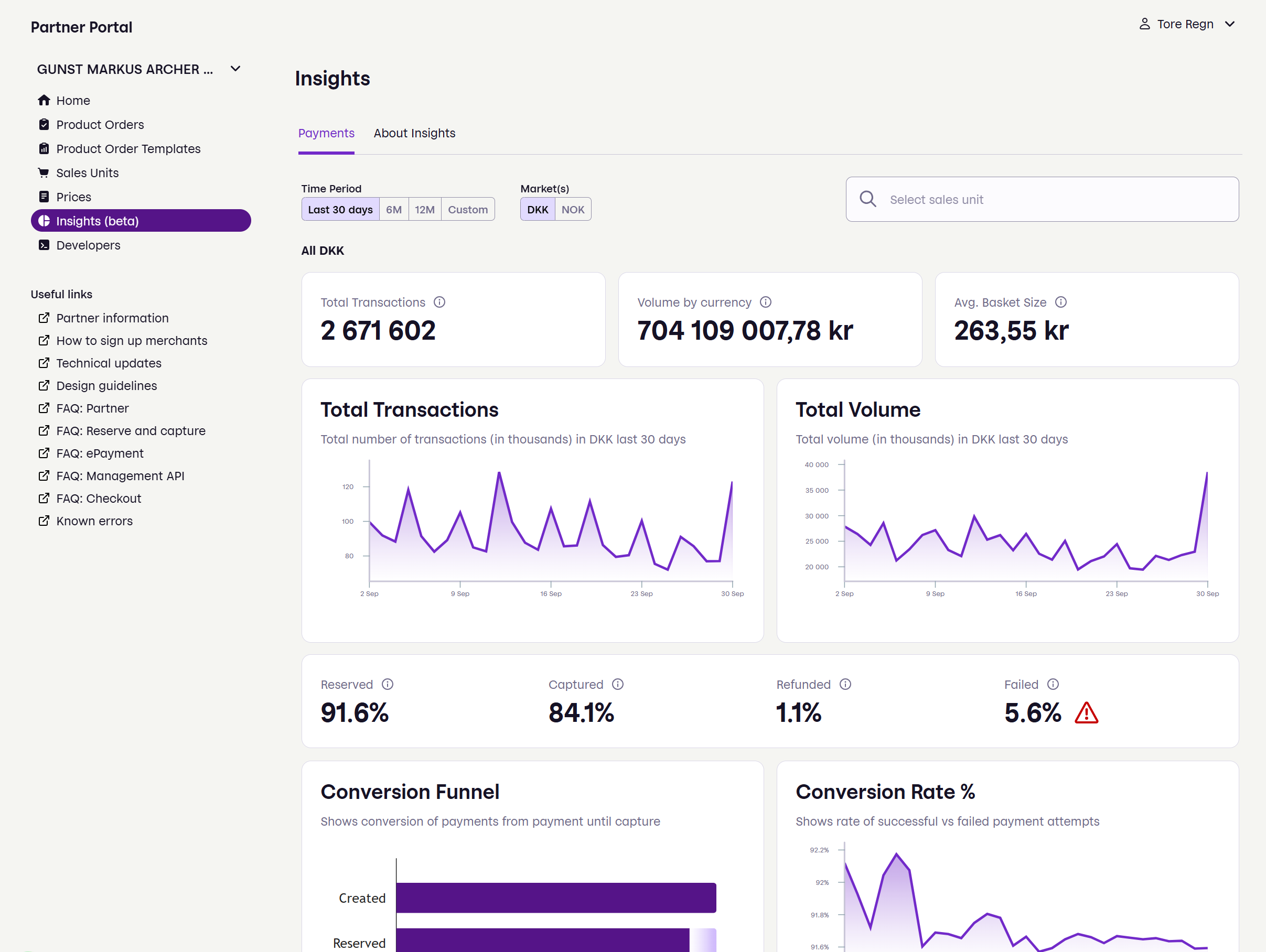 You can now see key payment and performance information directly in the Partner Portal at portal.vippsmobilepay.com. The new tab is available for both partners and merchants.