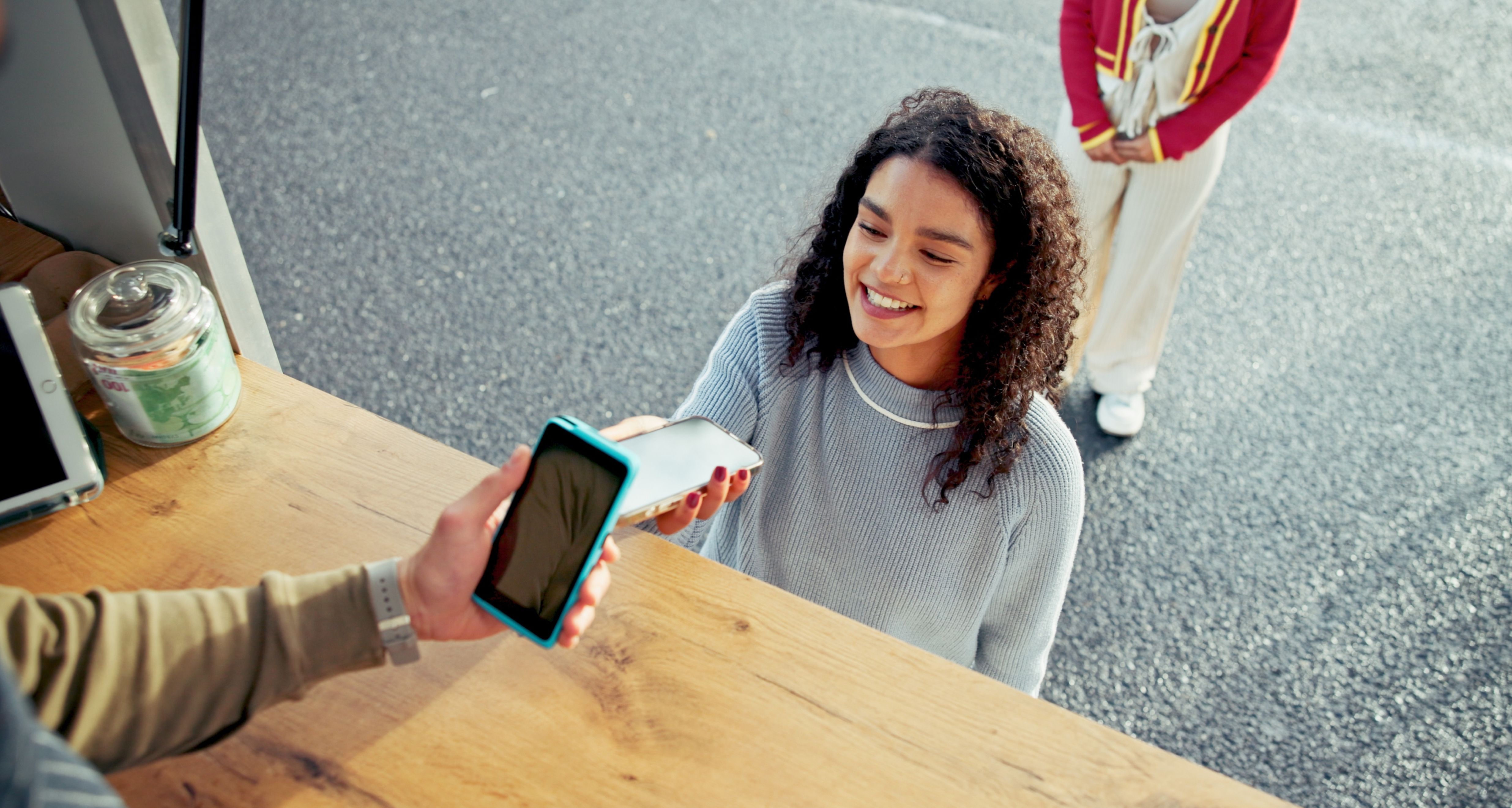 - Asiakas skannaa QR-koodin tai täppää kortillaan suoraan puhelimeesi